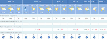 NERJA – Met temperaturen die tegen de 30 graden Celsius aanhikken is de zomer rond Nerja deze week definitief aangebroken. Maandag 16 mei en dinsdag 17 mei halen de gemiddelde dagtemperaturen een waarde van 25 graden, daarna lopen de temperaturen verder op richting de grens van 30 graden Celsius. Dit voorzien de meteorologen van het weerstation Aemet (Agencia Estatal de Meteorología) in hun meest recnte weersvoorspellingen.