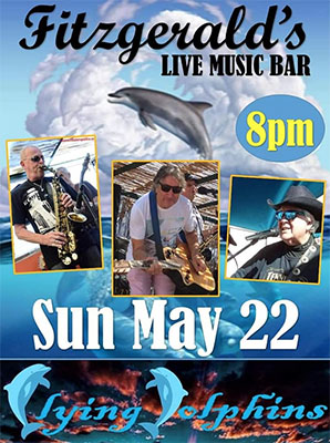 NERJA – De regionaal vermaarde band The Flying Dolphins speelt zondagavond 22 mei weer bij Fitzgerald’s Bar in Nerja.