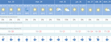 NERJA – De meteorologen van het weerstation Aemet (Agencia Estatal de Meteorología) verwachten deze week én voor het komend weekeinde veel zon en gemiddelde dagtemperaturen van circa 25 graden Celsius rond Nerja.