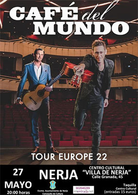 NERJA – In het Centro Cultural van Nerja aan de Calle Granada 45 staat vrijdag 27 mei het gitaarconcert Café del Mundo op het programma. Dit concert wordt verzorgd oor de gitaristen Jan Pascal en Alexander Kilian, die inmiddels zes cd´s op hun naam hebben staan en momenteel bezig zijn aan een tournee door geheel Europa.
