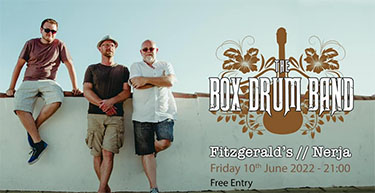NERJA – The Box Drum Band (met onder meer de regionaal populaire zanger en gitarist Lee Townsend in de gelederen) treedt vrijdagavond 10 juni op bij Fitzgerald’s Bar in Nerja, op de hoek van park Verano Azul onder het pand van de Carrefour-supermarkt in Nerja.