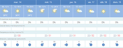 NERJA – De meteorologen van het weerstation Aemet (Agencia Estatal de Meteorología) verwachten deze week én voor het komend weekeinde veel zon en gemiddelde dagtemperaturen van circa 31 graden Celsius rond Nerja.