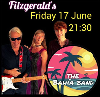 NERJA – The Bahía Band treedt vrijdagavond 17 juni op bij Fitzgerald’s Bar, op de hoek van park Verano Azul onder het pand van de Carrefour-supermarkt in Nerja.