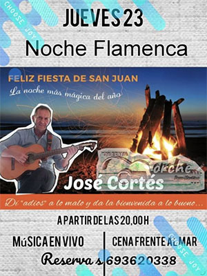 EL MORCHE – De Spaanse (flamenco)zanger en gitarist José Cortés speelt tijdens de jaarlijkse San Juan viering op donderdag 23 juni bij Taberna El Morche in de gelijknamige kustplaats aan de N-340 tussen Nerja en Málaga.