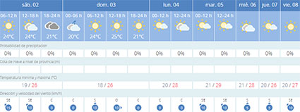 NERJA – Met gemiddelde dagtemperaturen rond de 30 graden Celsius, véél zon en weinig wind staat Nerja en omgeving wederom een warm weekeinde én week te wachten. Dit voorzien de meteorologen van het weerstation Aemet (Agencia Estatal de Meteorología) in hun vooruitzichten voor de komende dagen.