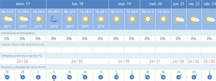 NERJA – Met gemiddelde dagtemperaturen van 30 graden Celsius en iets daarboven staat Nerja en naaste omgeving opnieuw een warme week te wachten. Dit voorzien de meteorologen van het weerstation Aemet (Agencia Estatal de Meteorología) in hun meest recente weersvoorspellingen.