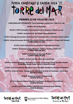 TORRE DEL MAR – Het jaarlijkse dorpsfeest van Torre del Mar staat dit jaar van donderdag 21 tot en met dinsdag 26 juli op de agenda. Tijdens dit ‘Feria de Santiago y Santa Ana’ gonst de kustplaats van de activiteiten, waarbij muziek en (flamenco-)dans centraal staat.