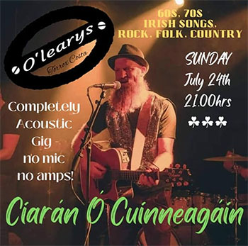 TORROX – De Ierse zanger Cíarán Ó´Cuínneagáin verzorgt zondagavond 24 juli een akoestisch optreden in de kustplaats Torrox, op circa tien kilometer van Nerja gelegen. Dit gebeurt in O’Leary’s Irish Bar aan de Paseo Maritímo de Ferrara.