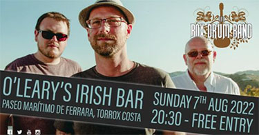 TORROX – The Box Drum Band (met onder meer de in de Axarquía-regio populaire zanger en gitarist Lee Townsend in de gelederen) treedt zondag 7 augustus op in de kustplaats Torrox, op circa tien kilometer van Nerja gelegen. Dit gebeurt in O’Leary’s Irish Bar aan de Paseo Marítimo de Ferrara.