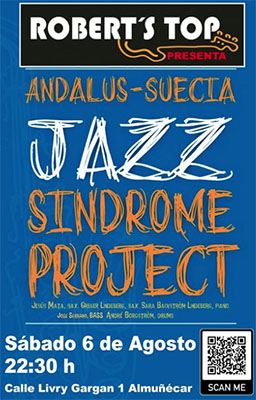 ALMUNECAR – In bar/restaurant Robert’s Top in Almuñécar staat zaterdagavond 6 augustus een optreden geprogrammeerd van het Jazz Sindrome Project. Het optreden begint rond 22.30 uur.