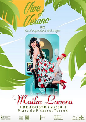 Optreden Maika Lavera in Torrox TORROX – De regionaal vermaarde zangeres Maika Lavera treedt zondagavond 7 augustus op in de kustplaats Torrox. Dit gebeurt op het Plaza de Picasso van Torrox. Het optreden begint rond de klok van 22.00 uur. Delen: Klik om te delen op X (Opent in een nieuw venster) X Klik om te delen op Facebook (Opent in een nieuw venster) Facebook Vind-ik-leuk Aan het laden...