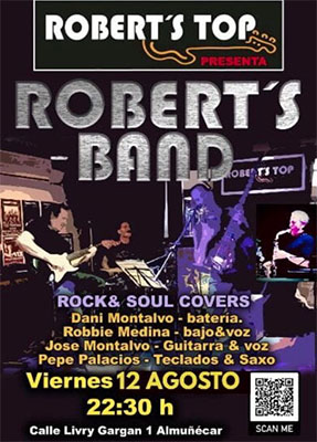 ALMUNECAR – In bar/restaurant Robert’s Top in Almuñécar staat vrijdagavond 12 augustus een optreden geprogrammeerd van Robert´s Band. Het optreden begint rond 22.30 uur.