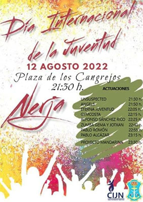 NERJA – Op het Plaza de los Cangrejos in Nerja wordt op vrijdagavond 12 augustus de jaarlijkse Día Internacional de la Juventud gevierd met onder meer dansdemonstraties. Deze zijn onderverdeeld in verschillende categorieën (onder meer flamenco, latijns-amerikaans en zumba) en worden vanaf 21.30 uur afgewerkt.