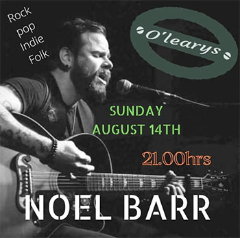 TORROX – De Ierse zanger en gitarist Noel Barr treedt zondagavond 14 augustus op in de kustplaats Torrox, op circa tien kilometer van Nerja gelegen. Dit gebeurt in O’Leary’s Irish Bar aan de Paseo Marítimo de Ferrara.