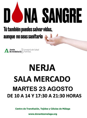 Mensen die bloed willen doneren kunnen tussen 10.00 en 14.00 uur en van 17.30-21.30 uur terecht in de Sala Mercado aan het Plaza de la Ermita van Nerja. Het vooraf maken van een afspraak is noodzakelijk, dit kan via de telefoonnummers +34 951 034 120 en +34 951 034 121 (tussen 11.00 en 14.00 uur) óf via de website http://www.donantesmalaga.org .