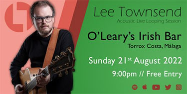 TORROX – De Britse zanger/gitarist Lee Townsend treedt zondagavond 21 augustus op bij O’Leary’s Bar aan de Paseo Marítimo de Ferrara in Torrox-Costa. Het optreden begint om circa 21.00 uur.