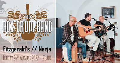 NERJA – The Box Drum Band (met onder anderen de regionaal populaire zanger en gitarist Lee Townsend in de gelederen) treedt vrijdagavond 26 augustus op bij Fitzgerald’s Bar in Nerja, op de hoek van park Verano Azul onder het pand van de Carrefour-supermarkt in Nerja.