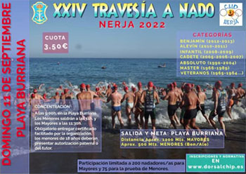 NERJA – Naar schatting zo’n tweehonderd zwemmers maken op zondag 11 september (was aanvankelijk vastgesteld op zondag 4 september, red.) hun opwachting op het strand van Burriana in Nerja om deel te nemen aan de ‘XXIV Travesía a Nado Ciudad de Nerja’. Deze jaarlijkse zwemwedstrijd in de Middellandse Zee gaat over een afstand van circa 1200 meter voor volwassenen en 500 meter voor de jongerencategorieën.