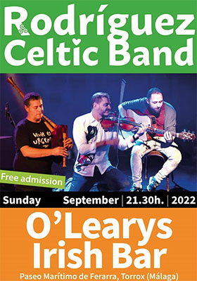 TORROX – In de kustplaats Torrox, op circa tien kilometer van Nerja gelegen, treedt zondagavond 4 september de uit Granada afkomstige Rodríguez Celitc Band op bij O’Learys Irish Bar aan de Paseo Marítimo de Ferrara.