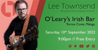TORROX – De Britse zanger/gitarist Lee Townsend treedt zaterdagavond 10 september op bij O’Leary’s Bar aan de Paseo Marítimo de Ferrara in Torrox-Costa. Het optreden begint om circa 21.00 uur, de toegang is vrij.