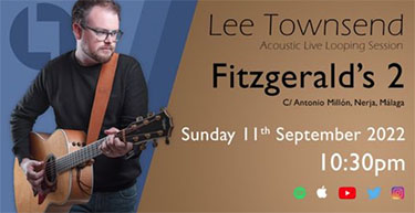 NERJA – De zanger en gitarist Lee Townsend treedt zondagavond 11 september op bij Fitzgerald’s Bar II, aan de Calle Antonio Millón in het centrum van Nerja. Townsend is een bekende muzikant in de regio rond Nerja en maakt deel uit van meerdere bands.