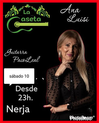 NERJA – Bij bar La Caseta op het uitgaansplein van Nerja, Plaza Tutti Frutti, staat zaterdagavond 10 september flamencomuziek centraal. Opgetreden wordt er door de flamencoartieste Ana Luisi, begeleid door de gitarist Paco Leal.