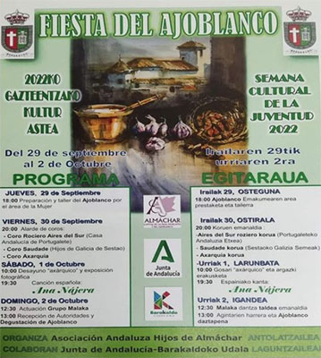 ALMACHAR – In september (dit jaar van donderdag 29 september tot en met zondag 2 oktober) wordt in Almáchar, een dorpje in de Axarquía-regio, het traditionele Fiesta del Ajoblanco gevierd. Het draait daarbij om hét lokale gerecht, de ajoblanco. Dit is een koude soep, van origine een Arabisch product, die onder meer is bereid met amandelen en knoflook.