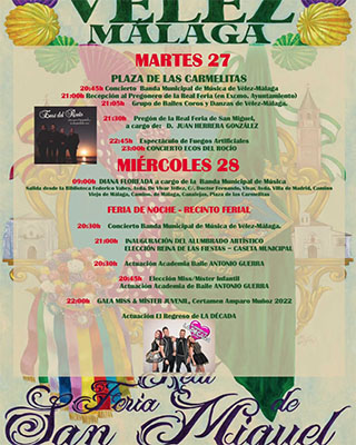 VELEZ-MALAGA – In de plaats Vélez-Málaga wordt van dinsdag 27 tot en met zondag 2 oktober het jaarlijkse Real Feria de San Miguel gevierd.