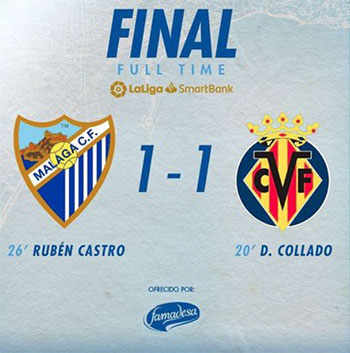 De thuisclub kwam daarbij na twintig minuten spelen op een 0-1 achterstand, toen Diego Collado Raya de bezoekers op voorsprong zette. Málaga rechtte snel de rug en kwam zes minuten later langszij door een treffer van Rubén Castro. Ondanks een duidelijk veldoverwicht van Málaga bleef het daarbij voor de blauw-witte formatie en bivakkeert de ploeg na zeven speelronden op de 22ste en laatste plaats op de ranglijst van de Spaanse Segunda División.
