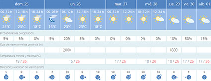 NERJA – De meteorologen van het weerstation Aemet (Agencia Estatal de Meteorología) verwachten deze week én voor het komend weekeinde veel zon en gemiddelde dagtemperaturen van circa 26 graden Celsius rond Nerja.