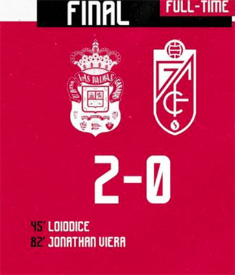 Enzo Loiodice was één minuut voor rust voor de openingstreffer van Las Palmas. Jonathan Viera verdubbelde de voorsprong acht minuten voor tijd door een verkregen strafschop te verzilveren.
