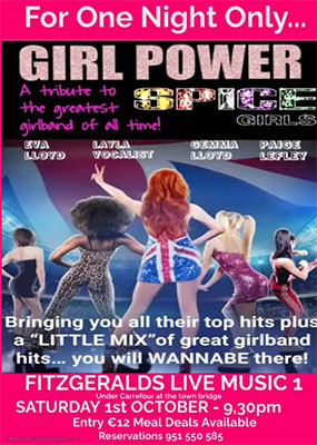 NERJA – De meidenband Girl Power speelt zaterdagavond 1 oktober bij Fitzgerald’s Bar in Nerja.