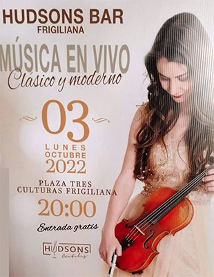 FRIGILIANA – De violiste Klara Gomboc treedt maandagavond 3 oktober op bij Hudsons Cocktail & Sports Bar in Frigiliana. Het optreden is vrij toegankelijk, de show begint rond de klok van 20.00 uur en duurt circa twee uur.