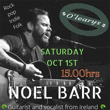 TORROX – De Ierse zanger en gitarist Noel Barr treedt zaterdagmiddag 1 oktober op in de kustplaats Torrox, op circa tien kilometer van Nerja gelegen. Dit gebeurt in O’Leary’s Irish Bar aan de Paseo Marítimo de Ferrara.