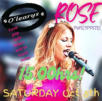 TORROX – De Argentijnse zangeres Rose Philippens treedt zaterdagmiddag 8 oktober op in de kustplaats Torrox, op circa tien kilometer van Nerja gelegen. Dit gebeurt in O’Leary’s Irish Bar aan de Paseo Marítimo de Ferrara.