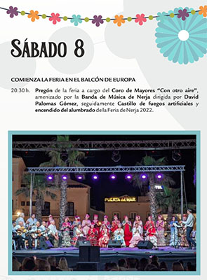 NERJA – Met een optreden van het koor Con otro Aire wordt zaterdagavond 8 oktober om 20.00 uur de officiële aftrap gegeven voor de reeks aan activiteiten rond het Feria de Nerja 2022. Het optreden vindt plaats op het Balcón de Europa met medewerking van de Banda de Música de Nerja.