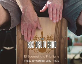 FRIGILIANA – In restaurant El Boquetillo aan de Calle San Sebastián 8 in Frigiliana treedt vrijdag 28 oktober de Britse Box Drum Band (met onder anderen de lokaal vermaarde gitarist en zanger Lee Townsend) op.
