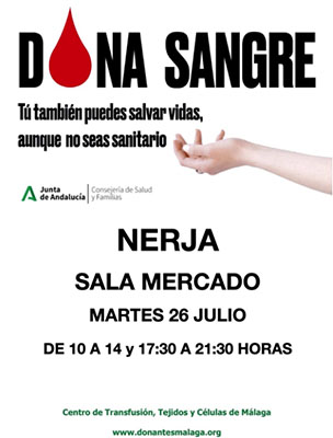 Mensen die bloed willen doneren kunnen tussen 10.00 en 14.00 uur en van 17.00-21.00 uur terecht in de Sala Mercado aan het Plaza de la Ermita van Nerja. Het vooraf maken van een afspraak is noodzakelijk, dit kan via de telefoonnummers +34 951 034 120 en +34 951 034 121 (tussen 11.00 en 14.00 uur) óf via de website http://www.donantesmalaga.org .