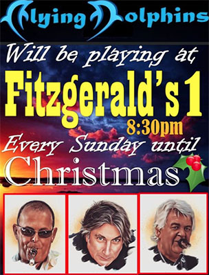 NERJA – De in de Axarquía-regio vermaarde en populaire band The Flying Dolphins treedt deze én de komende maanden iedere zondagavond op bij Fitzgerald’s Bar, op de hoek van park Verano Azul (Calle Antonio Ferrandis Chanquete) onder het pand van de Carrefour-supermarkt in Nerja.
