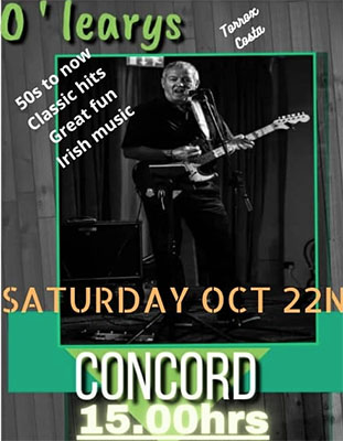 TORROX – In Torrox-Costa treedt zaterdagavond 22 oktober de Ierse zanger en gitarist Concord op. Dit gebeurt in O’Leary’s Irish Bar aan de Paseo Marítimo de Ferrara.
