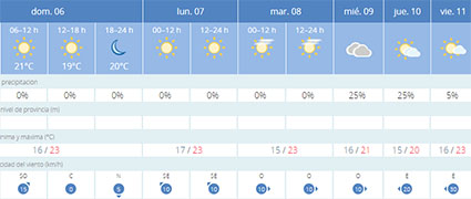NERJA – Nerja en naaste omgeving staat een week te wachten met fraai nazomerweer, waarbij de gemiddelde dagtemperaturen oplopen naar ruim boven de twintig graden Celsius en waarbij de zon een hoofdrol vertolkt. Dit blijkt uit de meest recente vooruitzichten van het weerstation Aemet (Agencia Estatal de Meteorología).