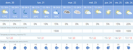 NERJA – De temperaturen rond Nerja gaan de komende dagen iets naar beneden in vergelijking met de afgelopen weken. Met ingang van maandag 21 november verwacht de Spaanse meteorologische dienst Aemet (Agencia Estatal de Meteorología) gemiddelde dagtemperaturen van circa 20 graden Celsius, in het weekeinde van 26 en 27 november voorziet het weerstation voor het eerst sinds lange tijd gemiddelden die de grens van 20 graden niet halen.
