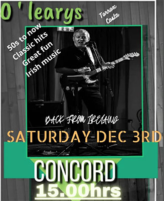 TORROX – In Torrox-Costa treedt zaterdagmiddag 3 december de Ierse zanger en gitarist Concord op. Dit gebeurt in O’Leary’s Irish Bar aan de Paseo Marítimo de Ferrara.