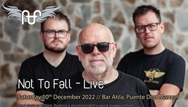 PUENTE DON MANUEL – De formatie Not to Fall treedt zaterdagmiddag 10 december op bij bar Atila in het plaatsje Puente Don Manuel, naast het meer van Viñuela (iets boven Vélez-Málaga).