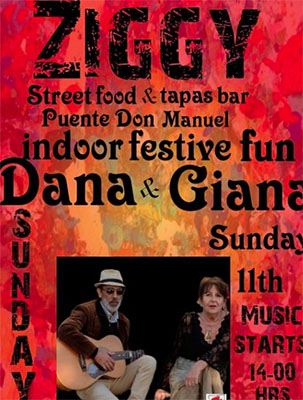 PUENTE DON MANUEL – Het duo Dana Andrews (zang) en Gianni Piras (gitaar) treedt zondagmiddag 11 december op in Puente Don Manuel. Dit gebeurt bij Bar Ziggy in het centrum van het dorp.