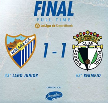 MALAGA – In de 24e speelronde voor de Spaanse Segunda División is de Andalusische voetbalclub Málaga CF er zaterdag 21 januari in het eigen La Rosaleda-stadion niet in geslaagd zich te ontdoen van de bezoekende subtopper Burgos CF: 1-1.