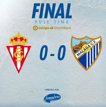 GIJON – In de Spaanse voetbalcompetitie voor de Segunda División heeft het Andalusische Málaga CF een punt overgehouden aan de uitwedstrijd tegen middenmoter Sporting Gijon. In een gelijk opgaande wedstrijd van matig niveau zagen beide ploegen geen kans om tot scoren te komen: 0-0.