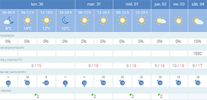 NERJA – Na een paar relatief koude dagen lopen de temperaturen weer iets op aan de Costa del Sol rond Nerja. De meteorologen van het weerstation Aemet (Agencia Estatal de Meteorología) verwachten deze week én voor het komend weekeinde veel zon en gemiddelde dagtemperaturen van circa 16 graden Celsius rond Nerja.
