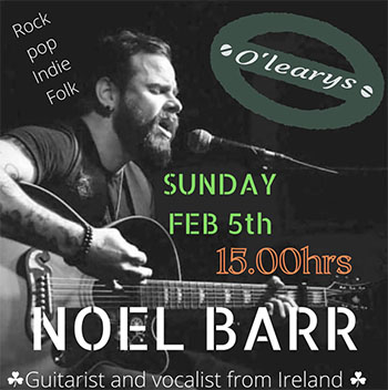 TORROX – De Ierse zanger en gitarist Noel Barr treedt zondagmiddag 5 februari op in de kustplaats Torrox, op circa tien kilometer van Nerja gelegen. Dit gebeurt in O’Leary’s Irish Bar aan de Paseo Maritímo de Ferrara.