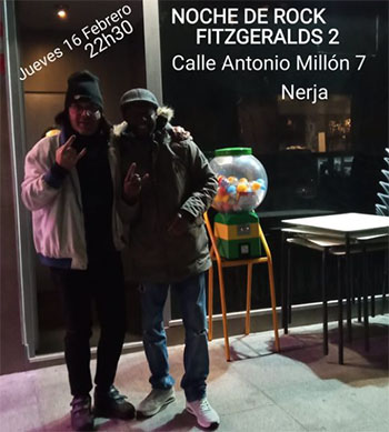 Noche de Rock bij Fitzgerald´s Bar II NERJA – Bij Fitzgerald’s Bar II aan de Calle Antonio Millón 7, in het centrum van Nerja, staat donderdagvond 14 februari een zogeheten ´Noche de Rock´ op het programma. De toegang is vrij, de optredens beginnen rond 22.30 uur. Delen: Klik om te delen op X (Opent in een nieuw venster) X Klik om te delen op Facebook (Opent in een nieuw venster) Facebook Vind-ik-leuk Aan het laden...